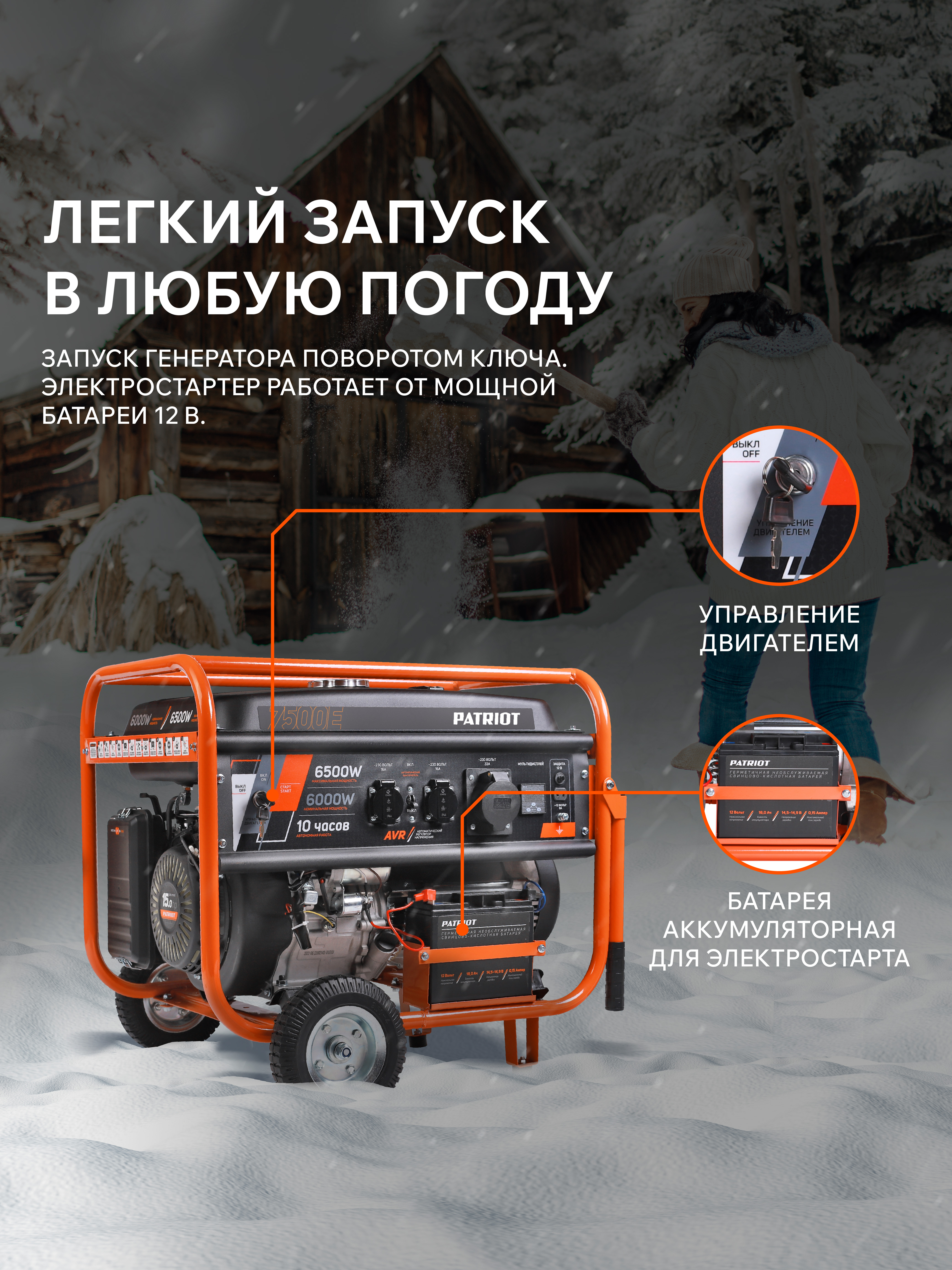 Бензиновый генератор PATRIOT GRS 7500 E 476102288: характеристики
